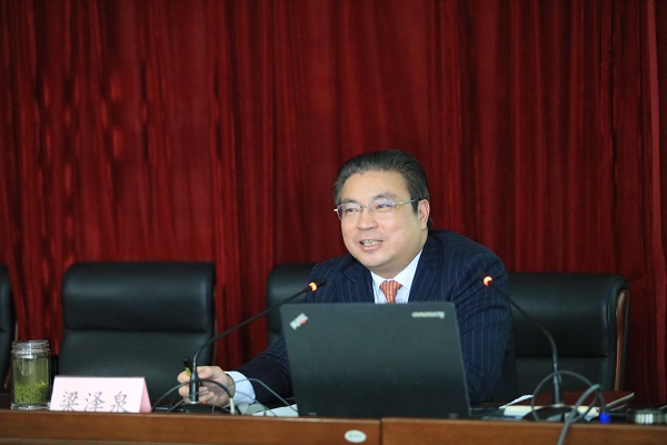 圖為集團黨委書記、董事長梁澤泉在講解仁禾中衡發(fā)展歷程和企業(yè)文化