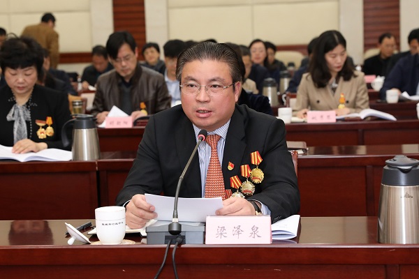 圖為梁澤泉同志在座談會(huì)上發(fā)言